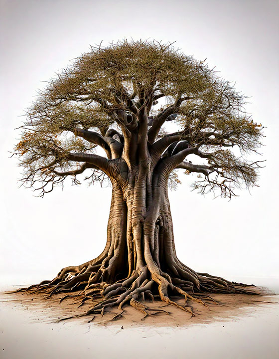 Developed for a Senegalese brand now based in Barcelona, this AI-assisted series reimagines fabric as both tradition and innovation. Inspired by the baobab — the “Tree of Life” in Senegalese culture — its forms evoke continuity, memory, and renewal through design iteration and crafted intention.